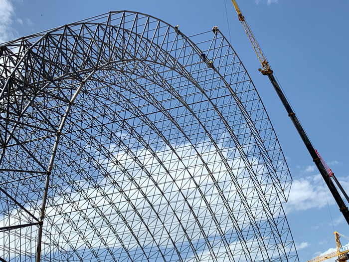 (2)网架加工前应对现场尺寸进行复测,确认无误后方可进行加工、安装;网架制作、运输、安装应遵守《空间网格结构技术规程》JGJ7-2010、《钢网架凌源螺栓球节点》JG/T 10-2009、《钢网架凌源螺栓球节点用高强度螺栓》 GB/T 16939-2016、《凌源钢结构凌源工程凌源施工规范》 GB50755-2012、《凌源钢结构凌源工程凌源施工质量验收标准》 GB50205-2020。